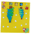 1日目の最後は、台紙の上に作ったパーツを置きながら、思い思いのレイアウトを考えて、次週に行うのり付けにそなえました。作ったパーツは、各自の名前を書いた袋に入れて保存します。